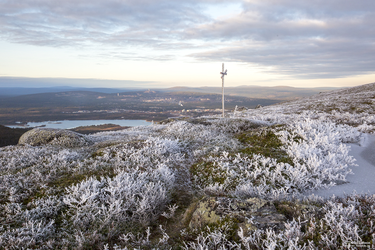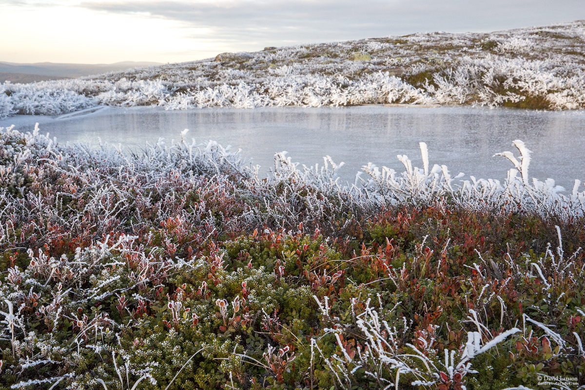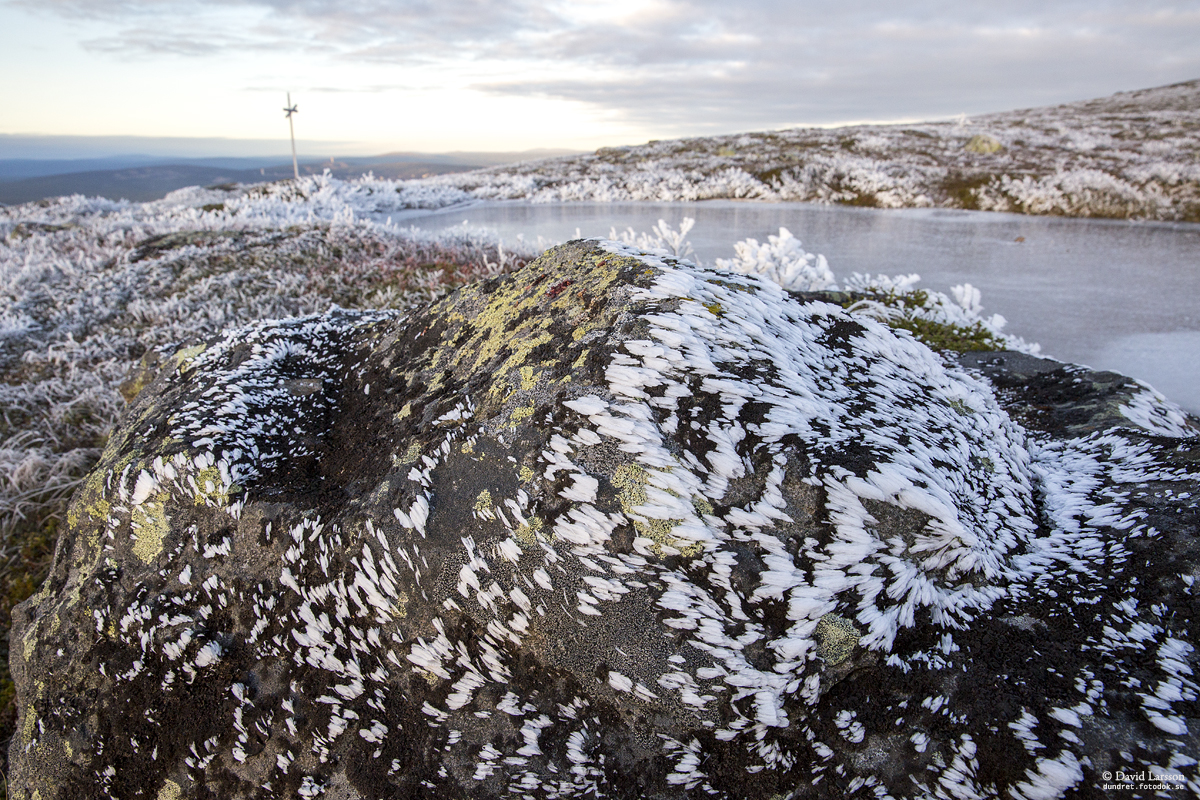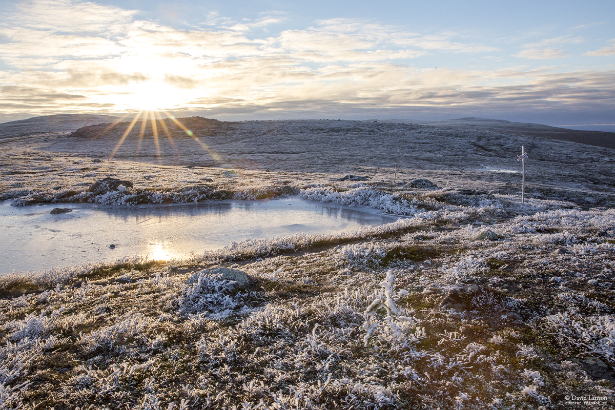 När molnen hänger över fjälltopparna vid kyligt höstväder kan vacker frost bildas som börjar glimma när solen plötsligt dyker upp. Det var vad som hände på eftermiddagen den 9 oktober.