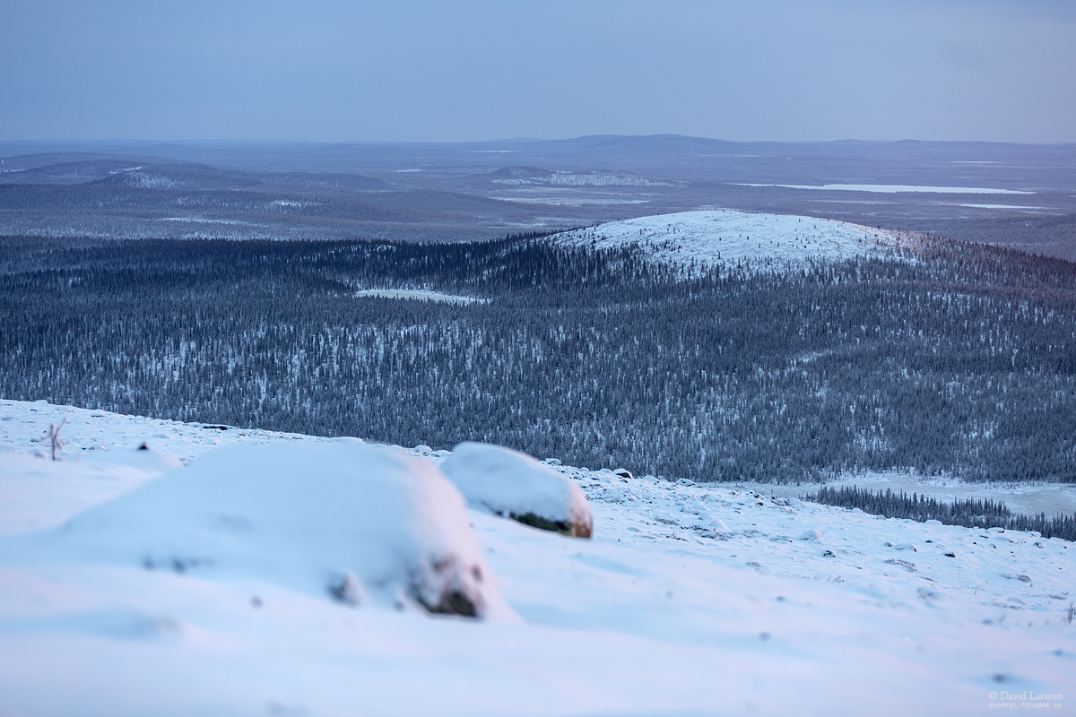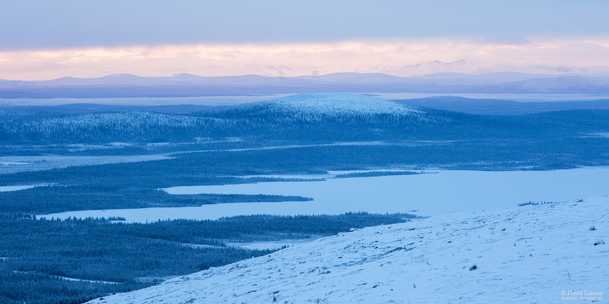 Den kala toppen på Kuolpavaara ligger rakt söder om Dundret, Råneträsket skymtar i bakgrunden till höger.