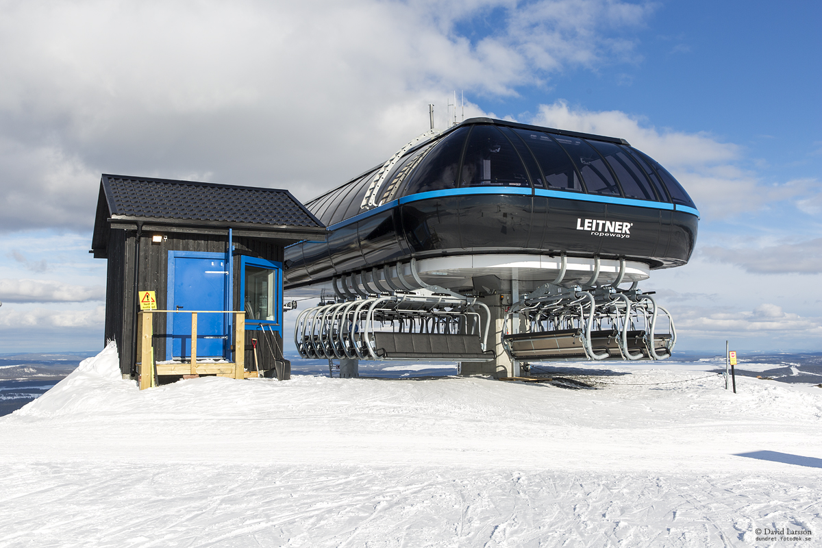 Trångt om saligheten för liftkorgarna vid toppstationen för Dundret Express på Linbanetoppen strax efter stängningstid för liftarna. Första toppen nådd!