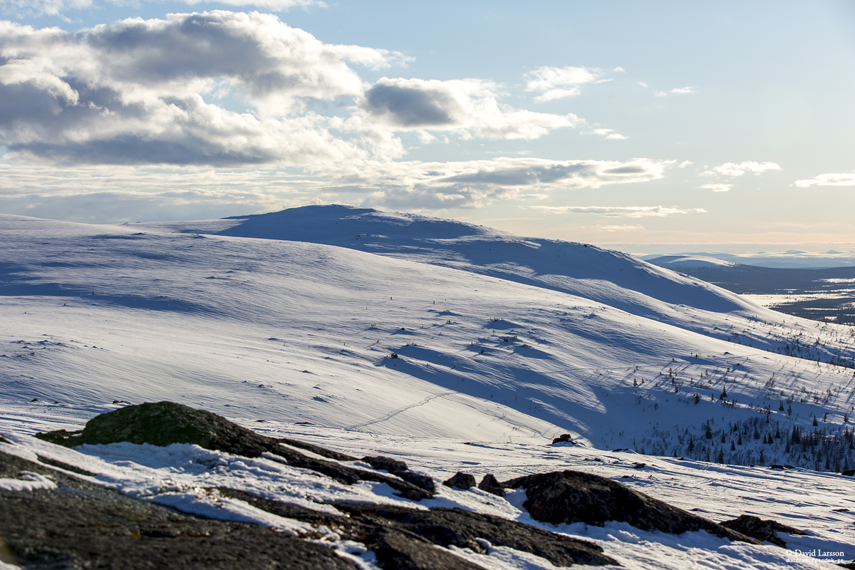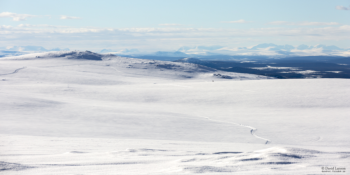 Medan vägar och delar av gräsmattor börjar titta fram nere i centrala Gällivare råder full vinter med mängder av snö uppe på Dundret. Trots starkt strålande vårvintersol håller sig snön någorlunda kall och ger fint skidföre. Denna aprilsöndag var molnigheten lite växlande men fram på eftermiddagen klarnade himlen upp från väster och öppnade för en lång skidtur över samtliga toppar. Den här gången utgick turen från Björnfällan via Soldalen till Linbanetoppen, Stora toppen, Kelvatoppen, Västtoppen och sist Lilla toppen med brant nedstigning tillbaka mot Björnfällan.