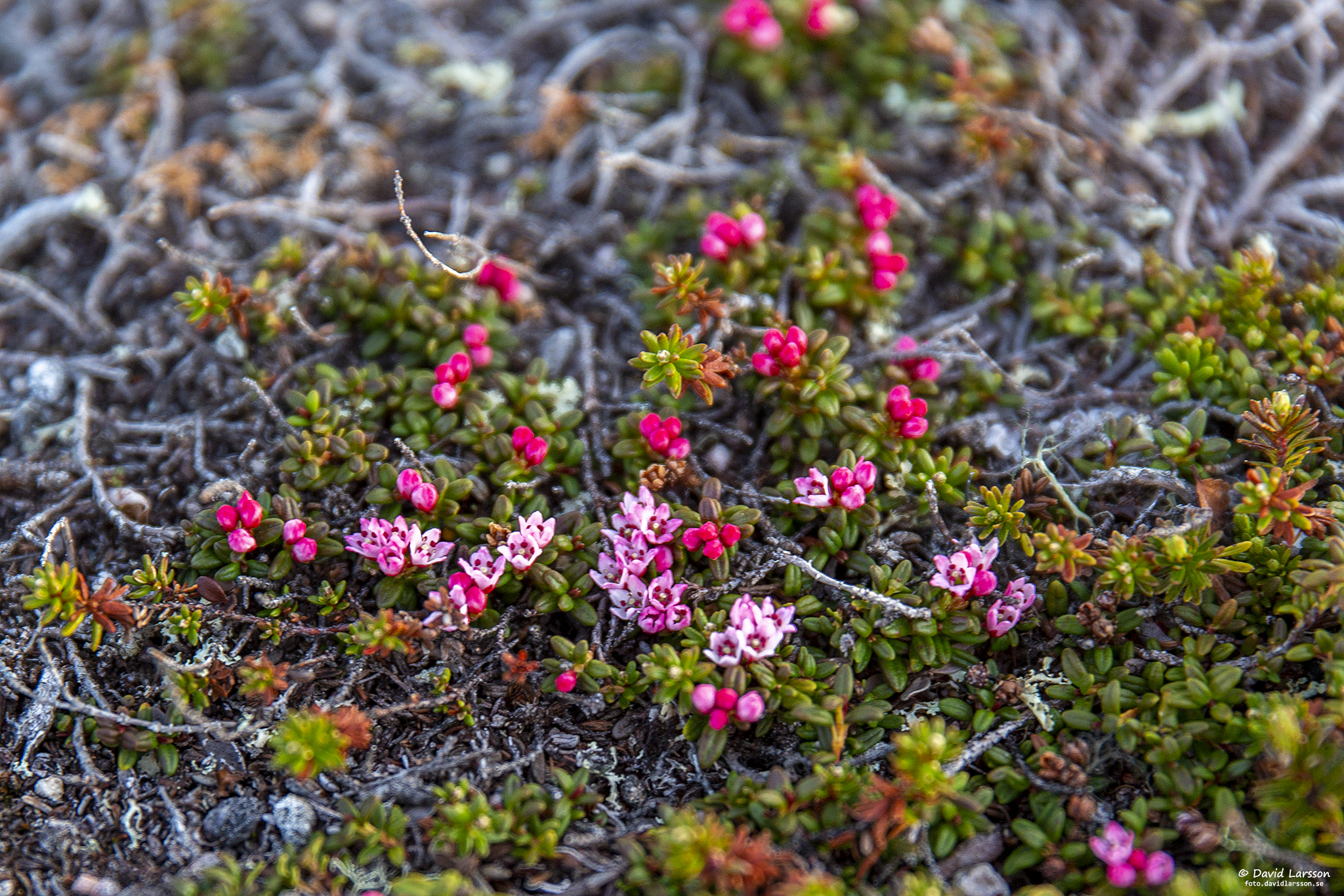 Det är inte länge sedan snön låg här, men redan har krypljungen börjat blomma på Lilla toppens mer utsatta och vindpinade fjällhedar.