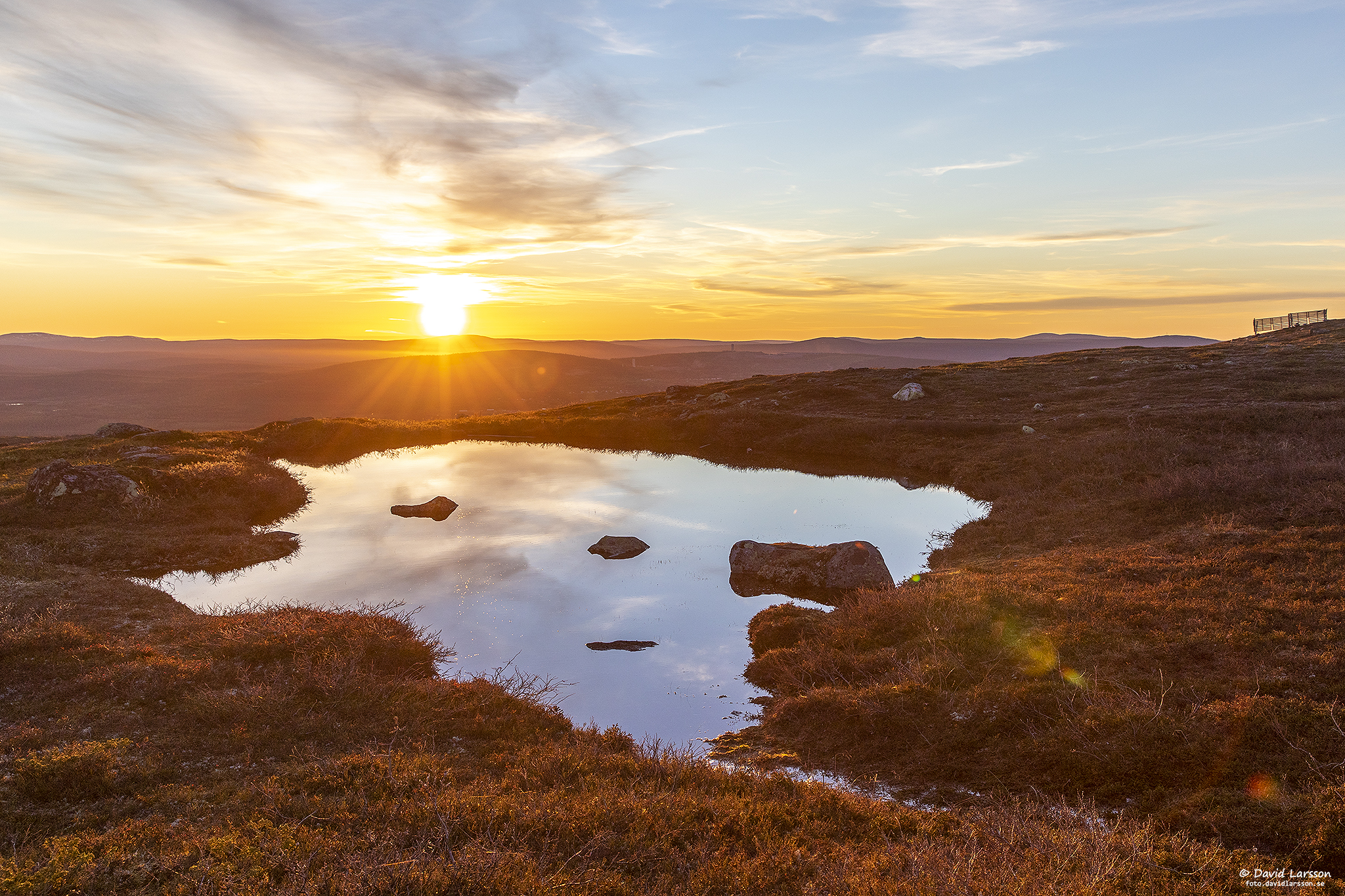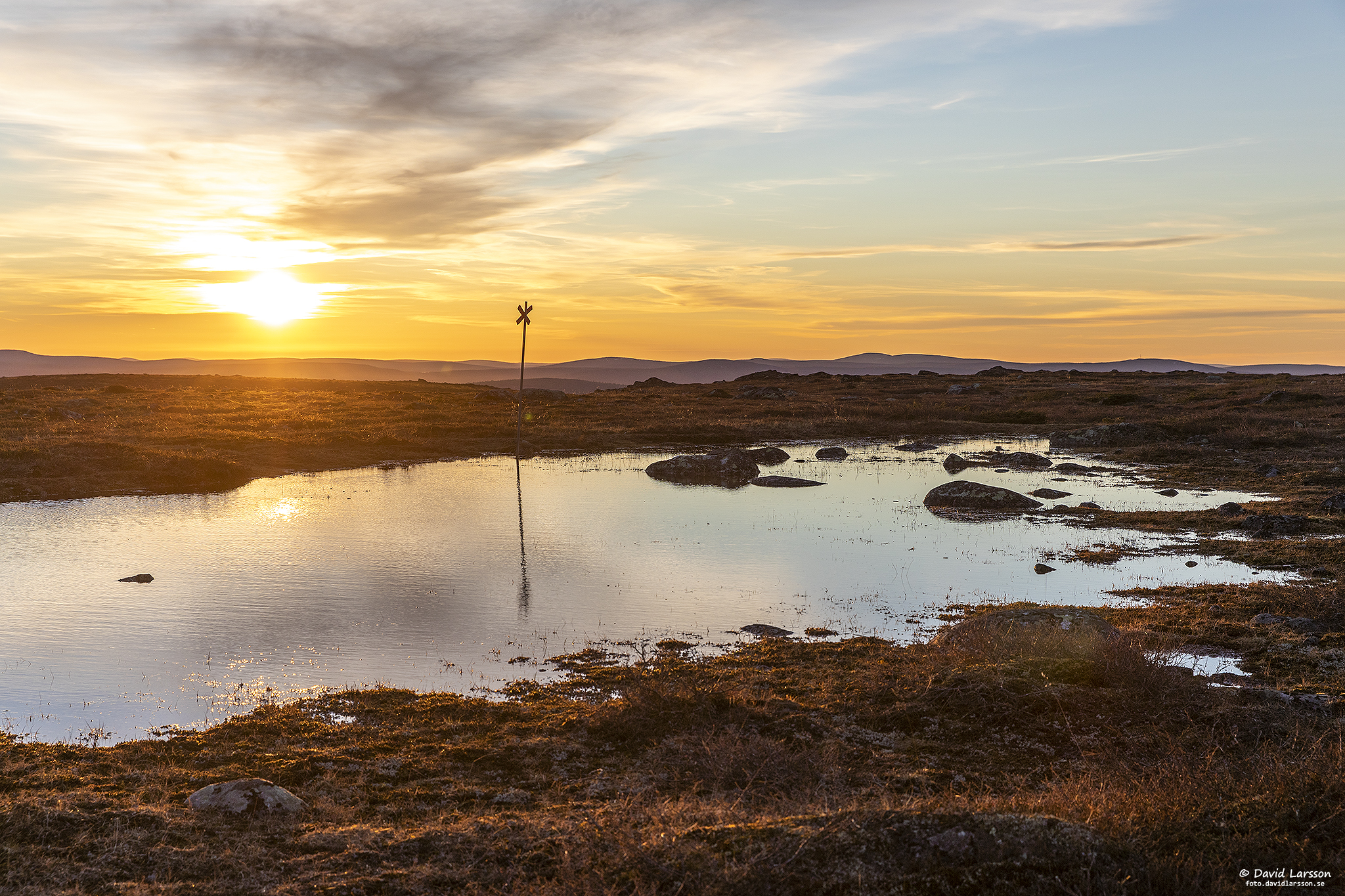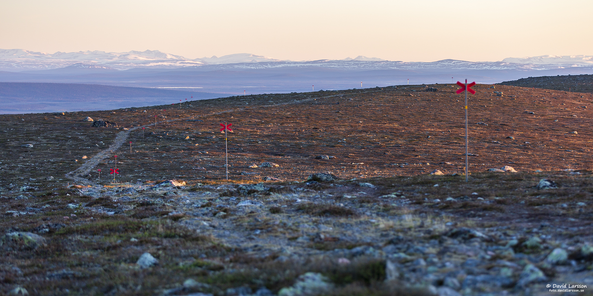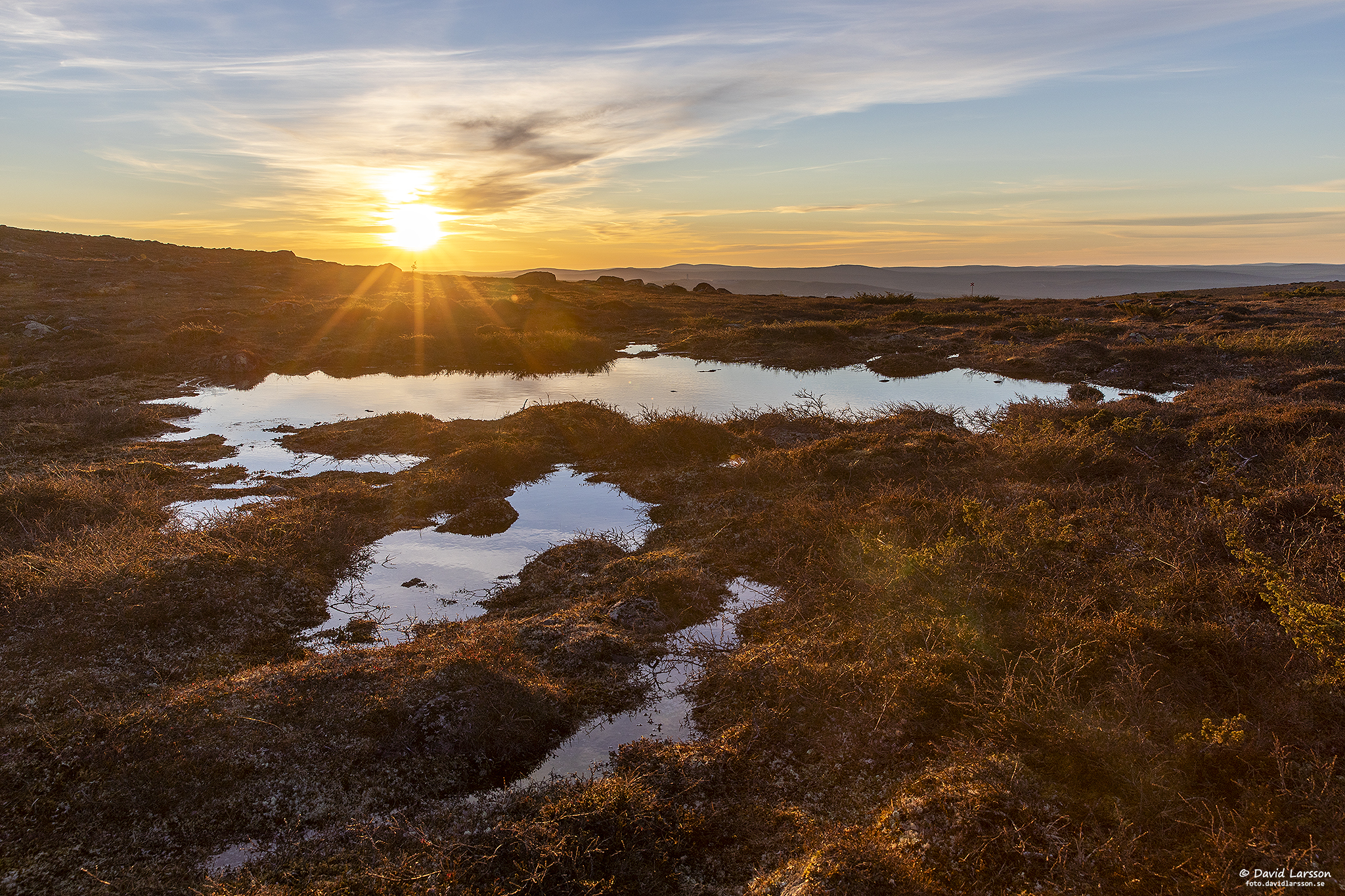 Som vanligt så här års står leden under vatten en kort bit strax öster om Kelvatoppen där terrängen är flack och avrinningen därmed obefintlig. Fjällheden är dock lättgången var som helst och vattenytan skapar vackra ljuseffekter när solen nu åter sakta stiger upp på himlen.