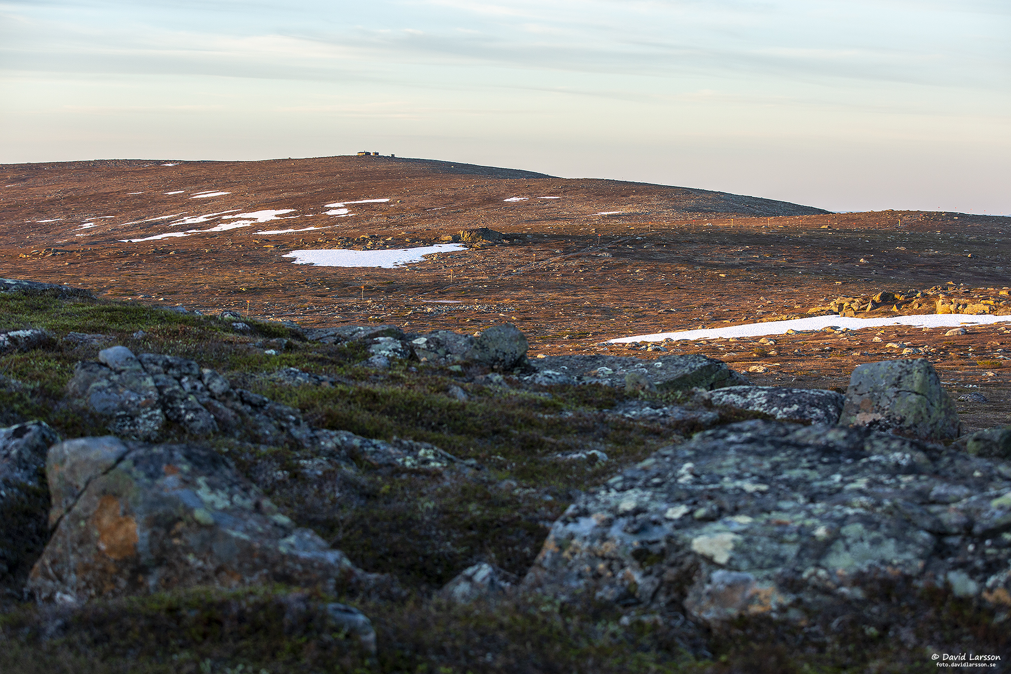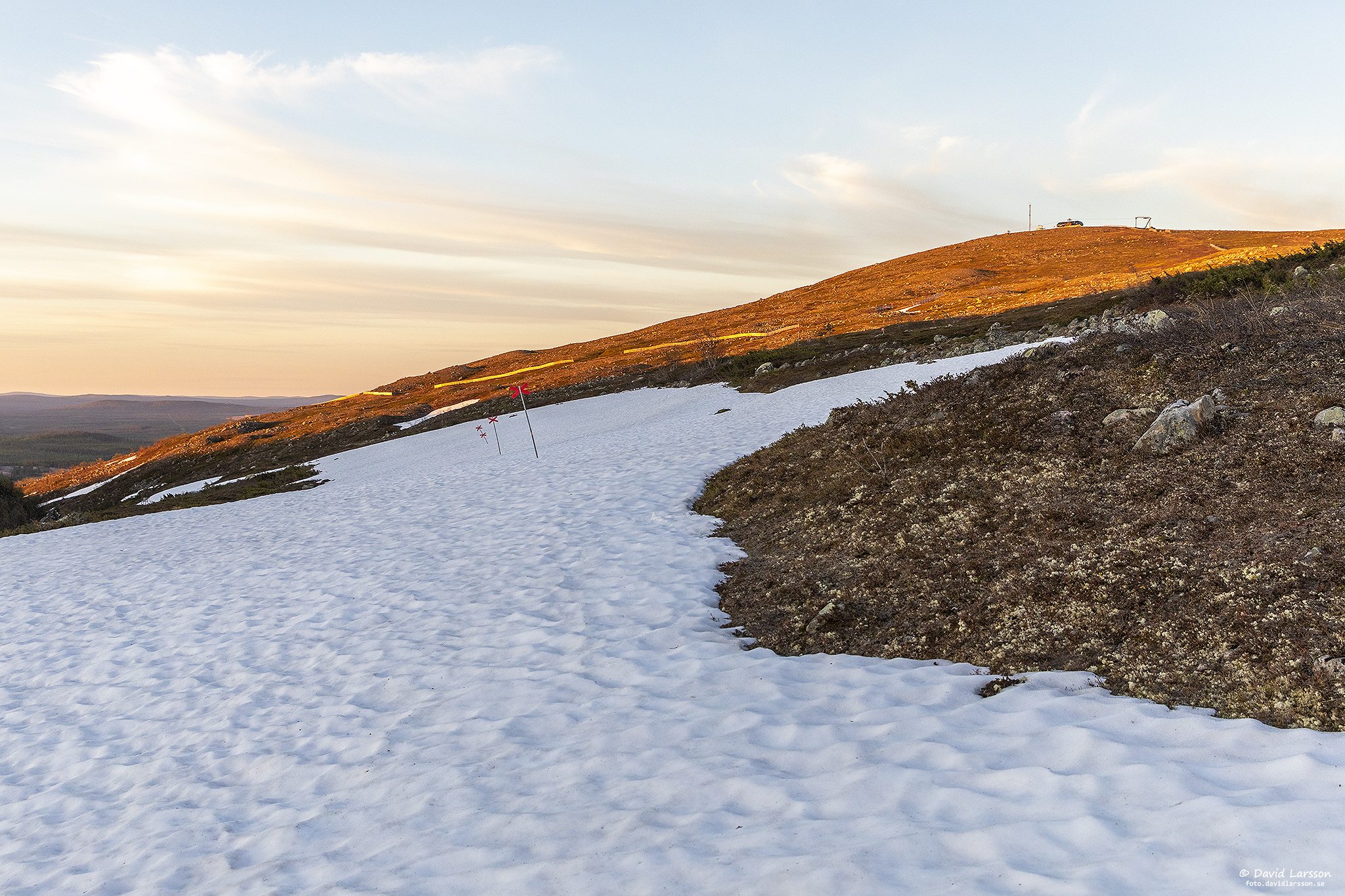 Mera snö i nordsluttningen ner mellan Kelvatoppen och Västtoppen, med solen stående i norr kan den nu värmas upp även nattetid.