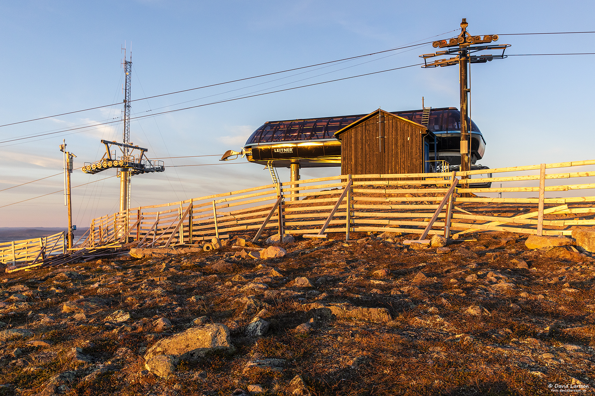 Linbanetoppen präglas som namnet nästan antyder en hel del av tekniska anläggningar för vinterns utförsåkning, även om linbanan idag är en modern sexstolslift.
