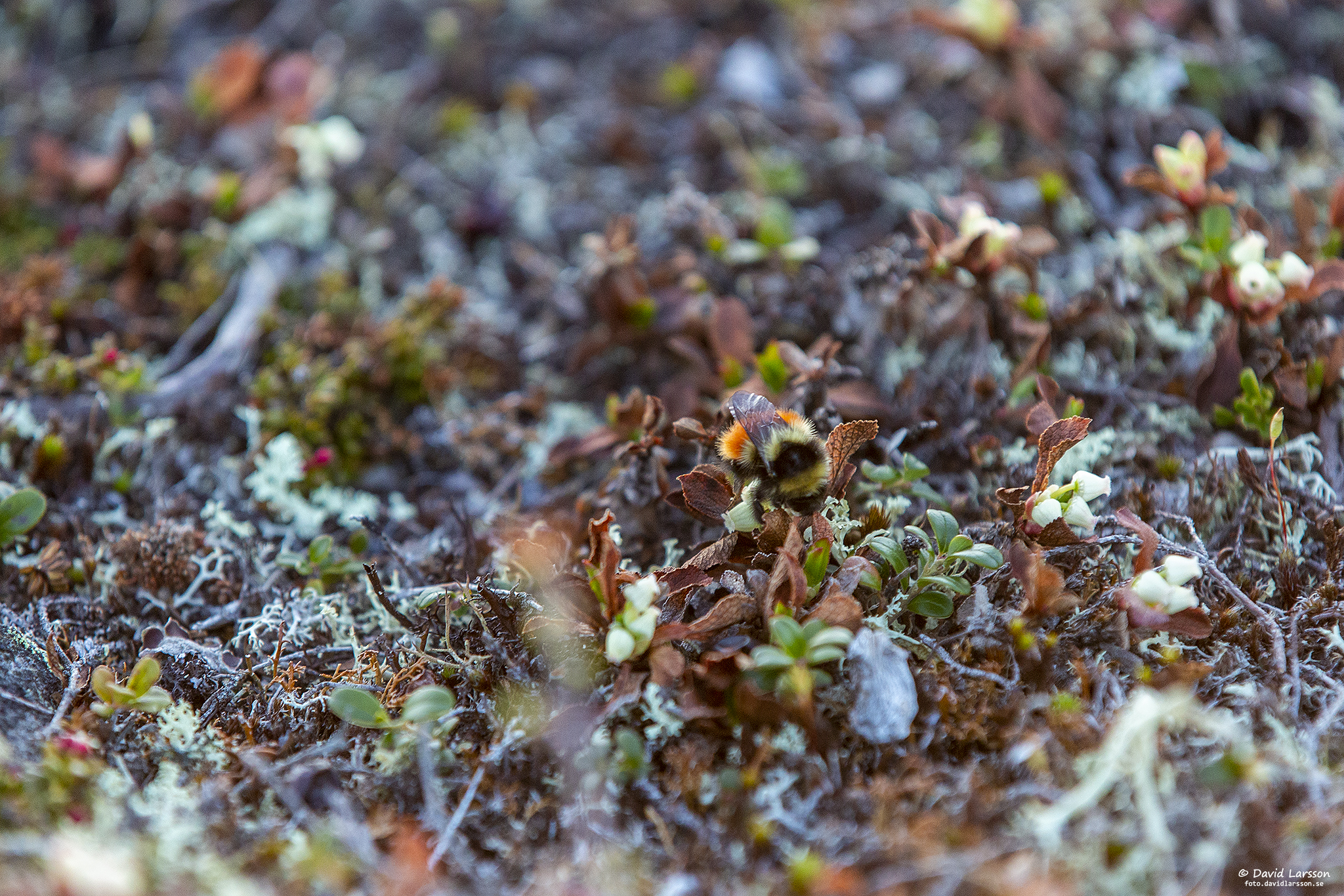 Humlorna är ute och pollinerar bland annat lingonblom på fjället även så här efter klockan ett på natten.