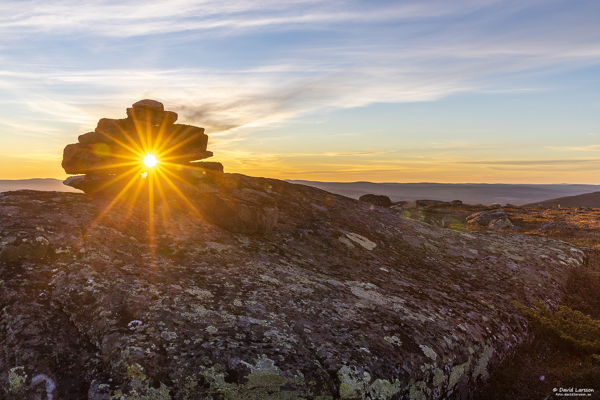 Solen strålar genom toppröset på Kelvatoppen när klockan nu börjar närma sig två på natten.