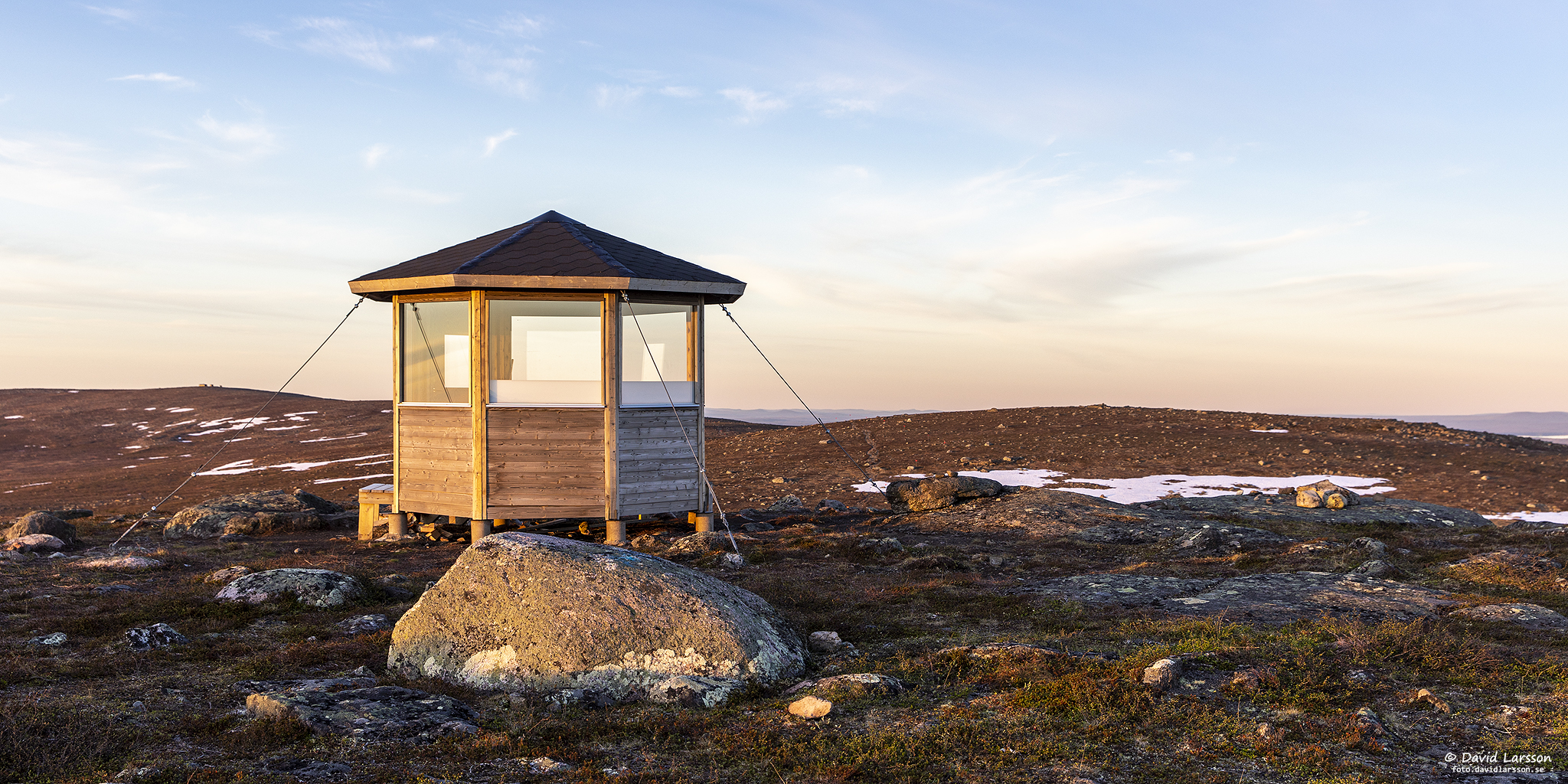 På vardera sidan om vindskyddet syns här Stora toppen och Kelvatoppen.