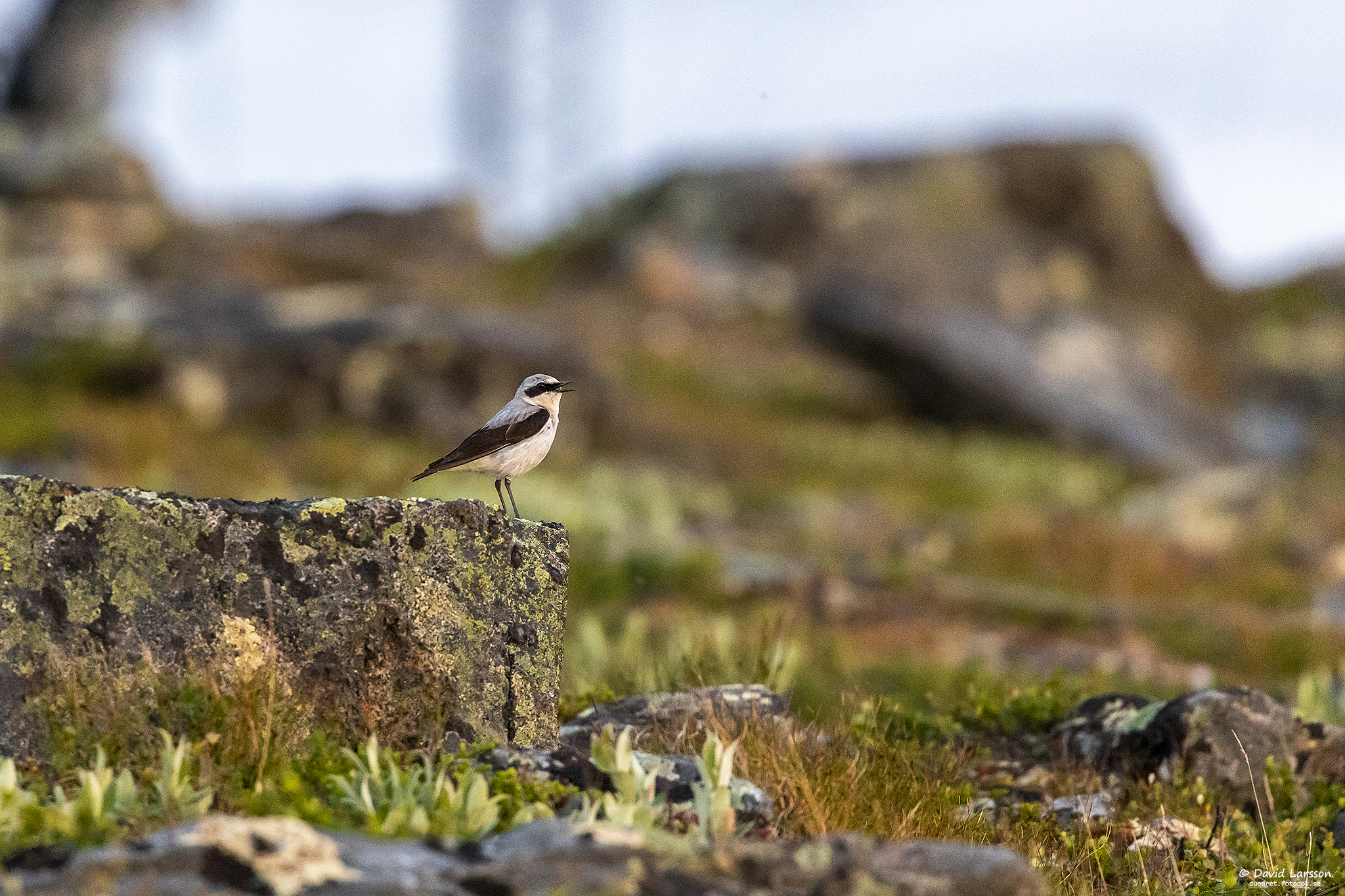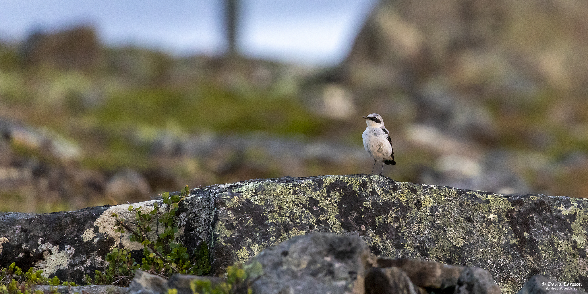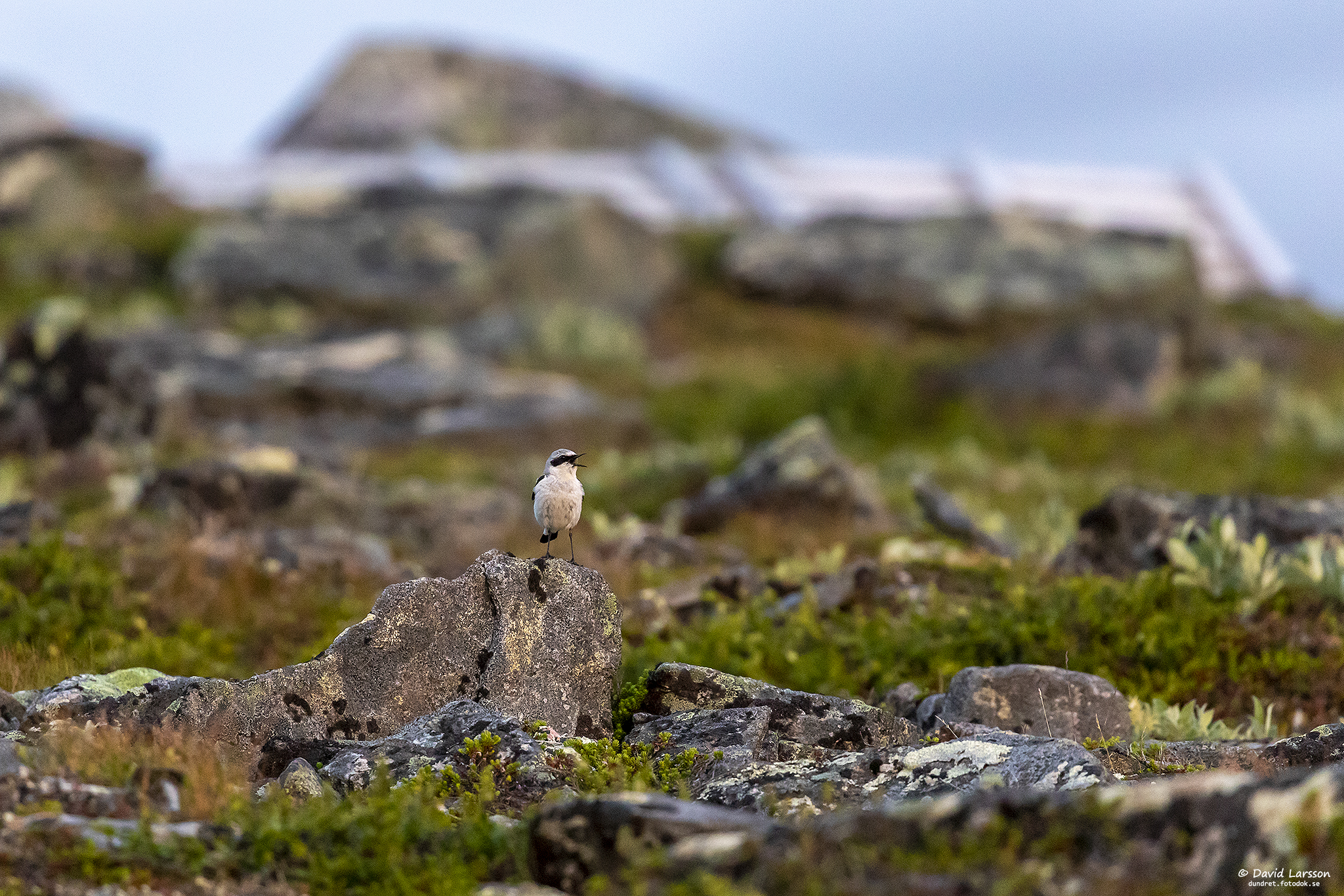 Stenskvätta på Linbanetoppen vid midnatt, naturligtvis på en av fjällets många stenar.