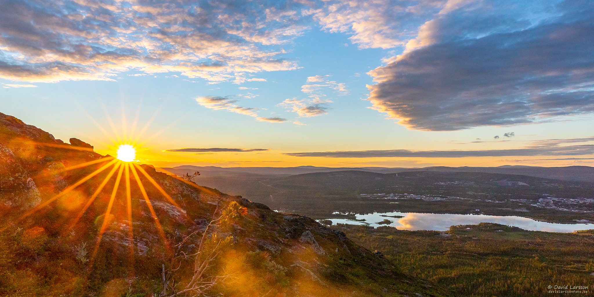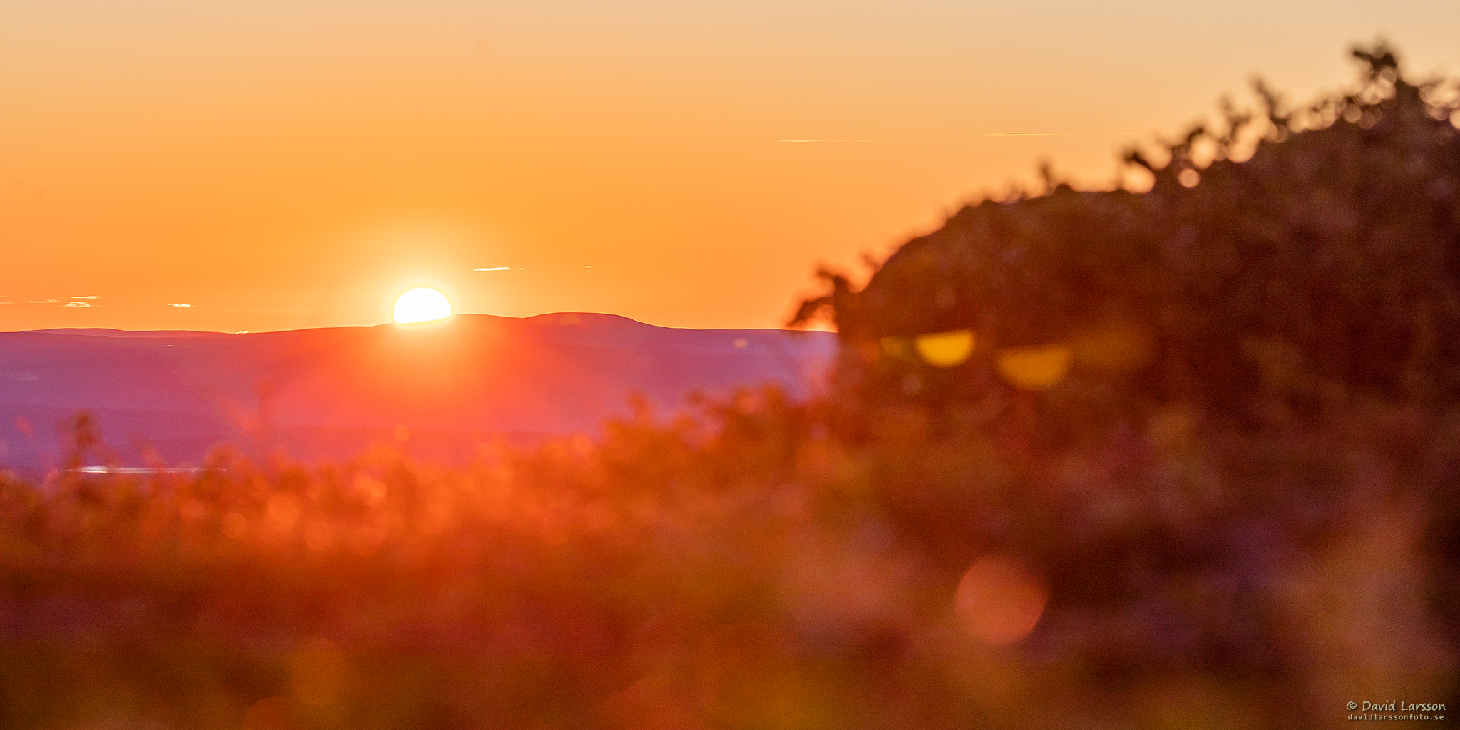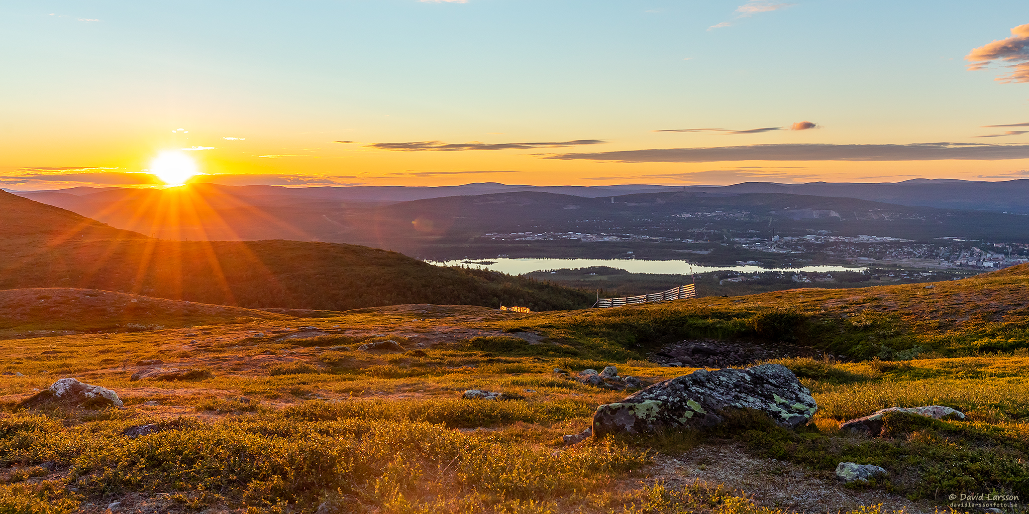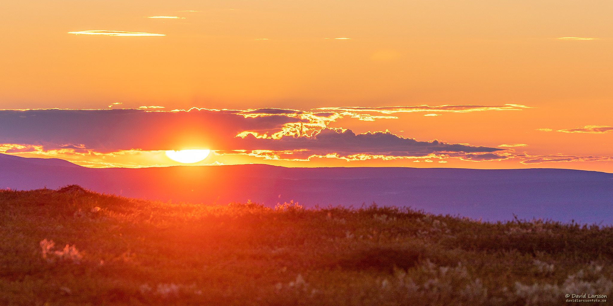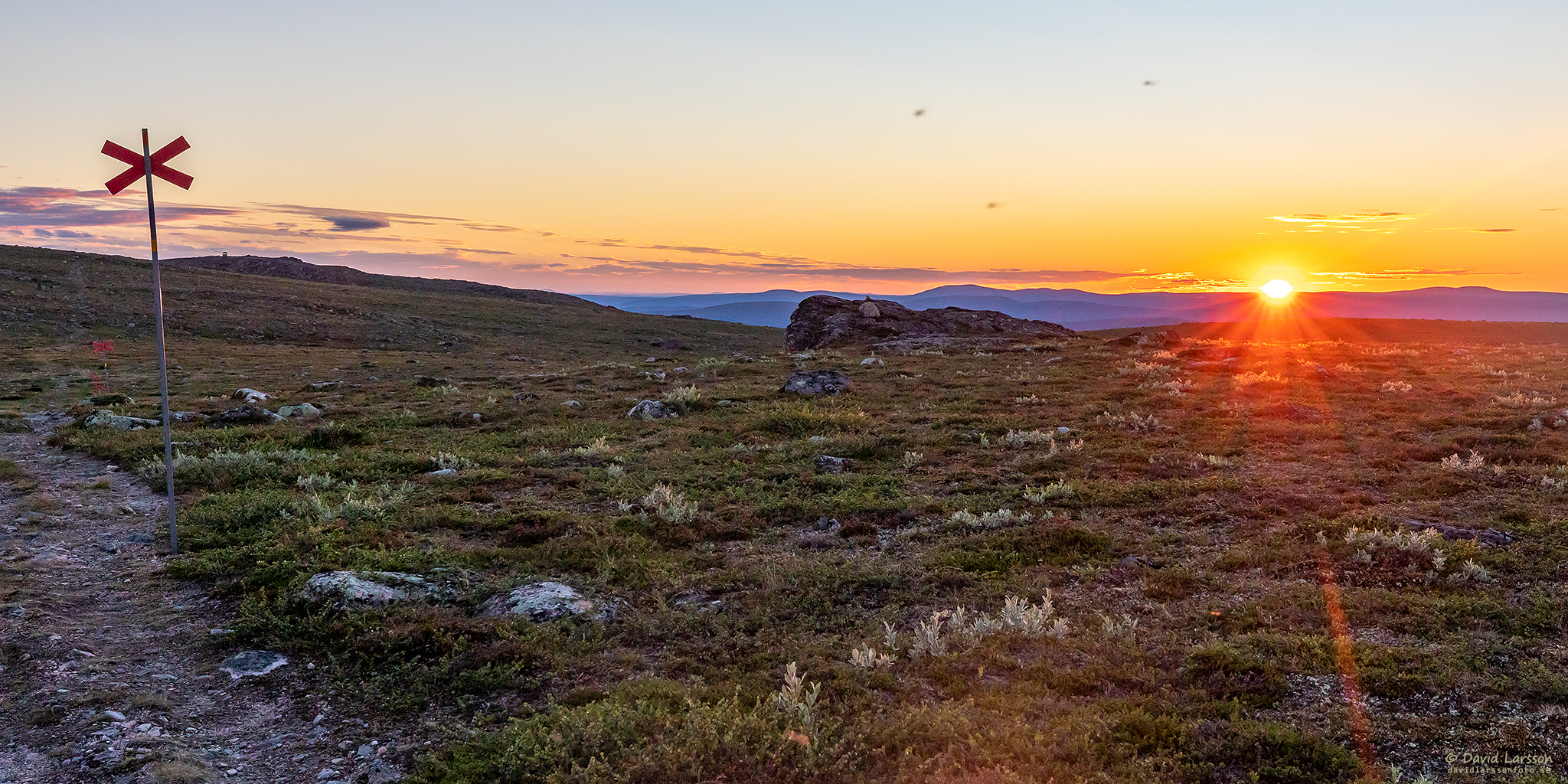 Vid lokal midnatt som denna natt inföll 00.42 befann jag mig på höjdryggen mellan Stora toppen och Kelvatoppen, och från denna plats återstod ungefär halva solskivan ovan horisonten.